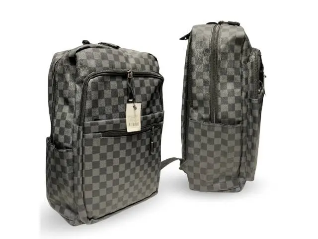 Mochila a cuadros forrada.Medidas: 39x42x15cm.Material: cuero pvc.Compartimiento interno para laptop.4 bolsillos con cierre.2 bolsillos laterales para botellas.