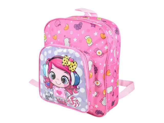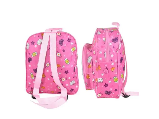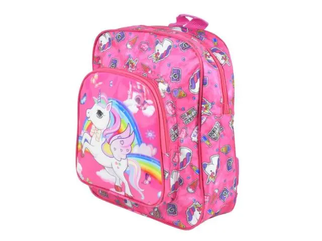 Mochila infantil unicornio , robot , joystick o muñeca.Medidas: 28x23x10cm.2 bolsillos con cierre.Color: rosado o celeste.